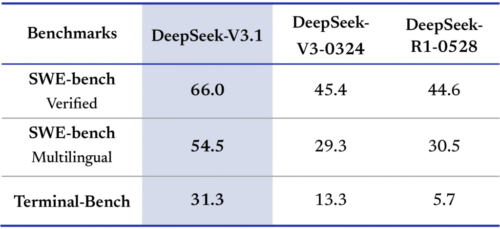 DeepSeek-V3.1 is much better at these multi-step tasks. It has been specifically trained to use digital “tools” (like a search engine or a calculator) to complete complex jobs. It’s also much better at difficult tasks like writing computer code and navigating complex command-line interfaces.