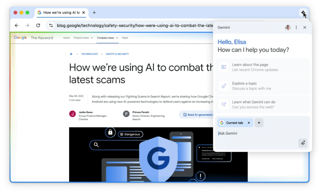 The biggest news is that Gemini is now built right into Chrome (starting with U.S. users on Mac and Windows).
