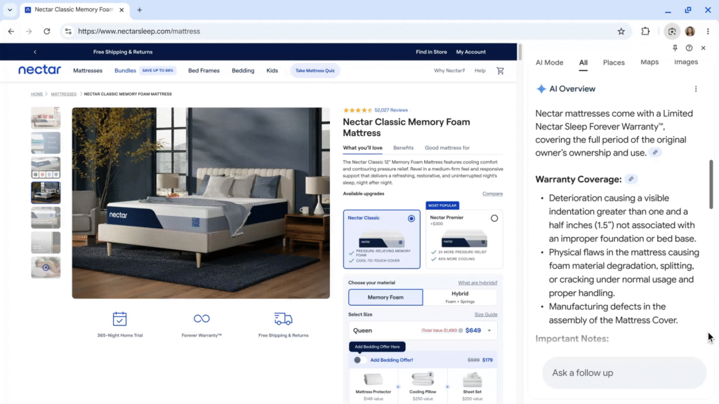 Similar to the Gemini side panel, you can also ask questions about the page you’re on right from the address bar.