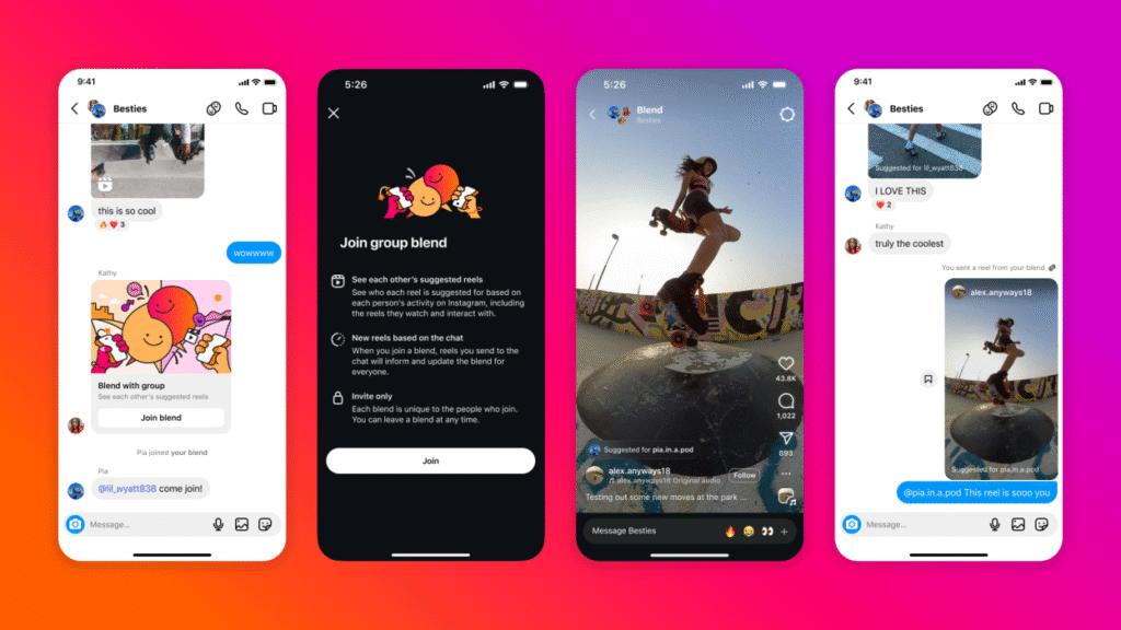 - “Blends” for personalized recommendations: Instagram is also using a smart system called “Blends.” This system looks at the types of Reels you and your friends like and recommends content that you both might enjoy. It’s like getting recommendations from a friend with great taste!