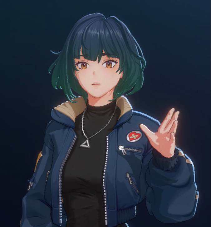 Matching her personality, Mika has a “biker-lite” or “rocker” aesthetic. Based on the official images, she is an anime-style character with: